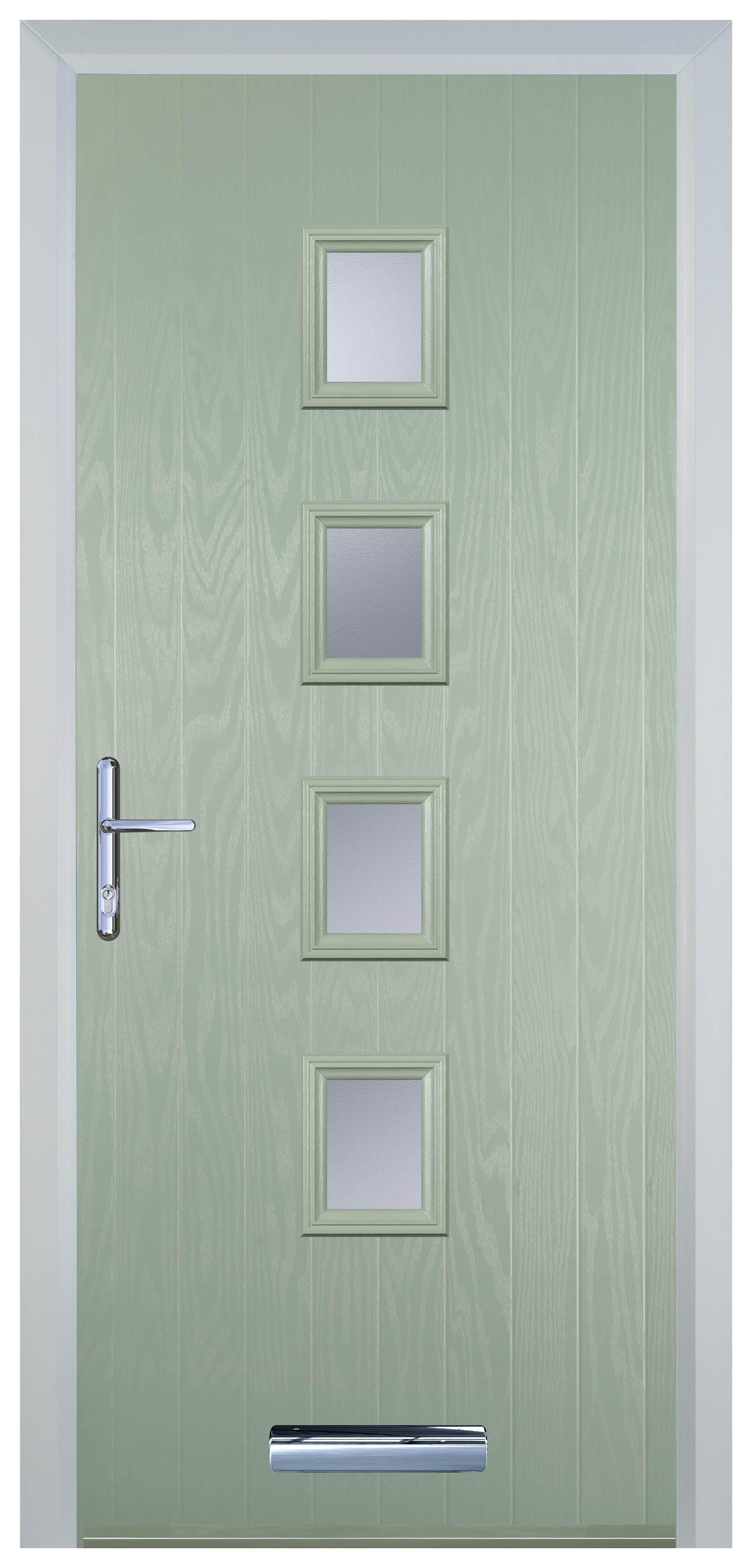 Door-Stop 4 Square Chartwell Green Right Hand GRP Composite Door with Stippolyte Glass - 840 x 2100mm