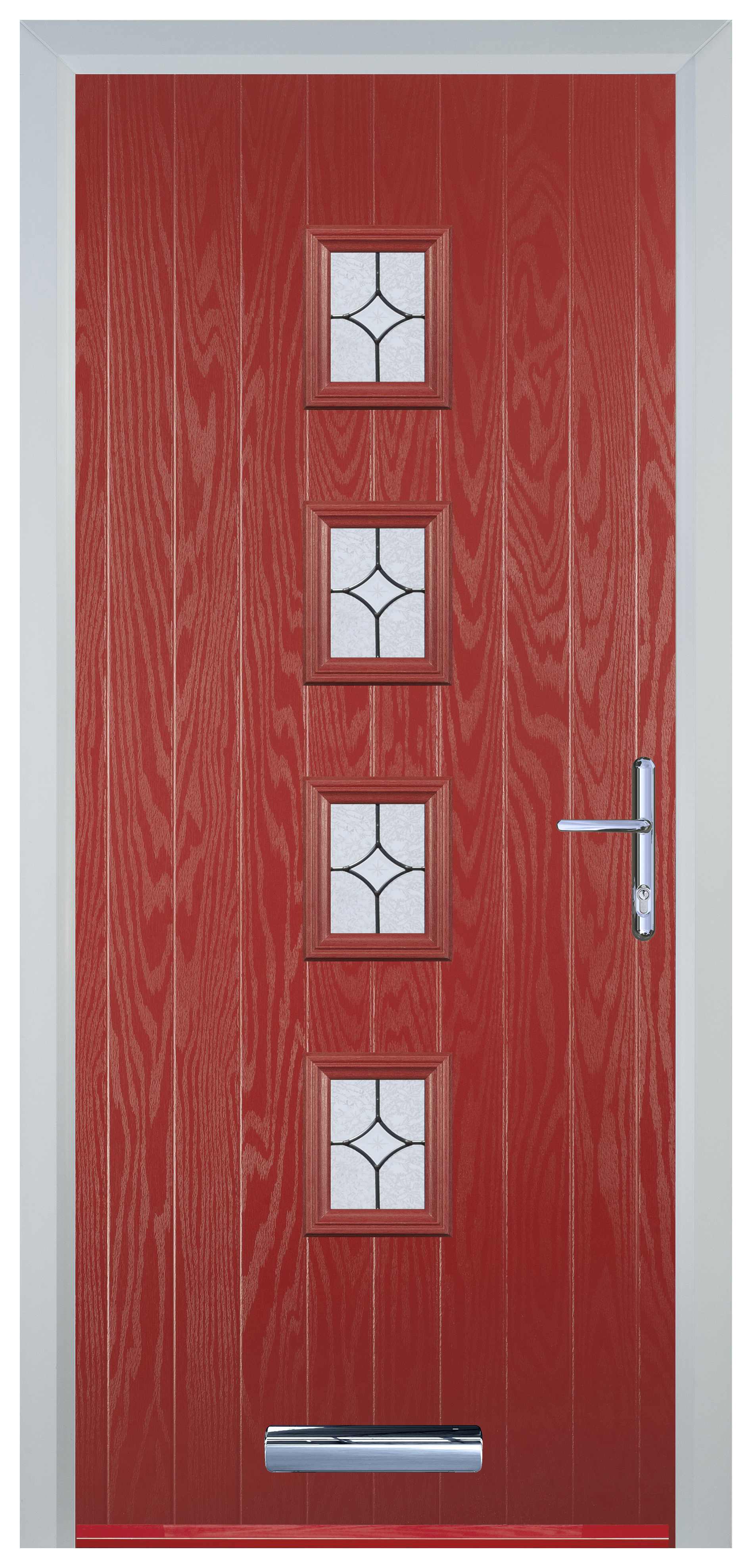 Door-Stop 4 Square Red Left Hand GRP Composite Door with Flair Glass - 920 x 2100mm - Door-Stop 4 Square Red Left Hand Composite Door is designed to elevate both style and functionality within your home. This door combines minimal maintenance with durable construction for lasting performance. With its elegant design, this door adds a touch of sophistication to any entryway. The vibrant red colour adds personality and charm, instantly enhancing your home's curb appeal. This door offers exceptional strength, stability, and security. Easy to install and its smooth surface is easy to clean, allowing you to enjoy its pristine appearance with minimal effort.