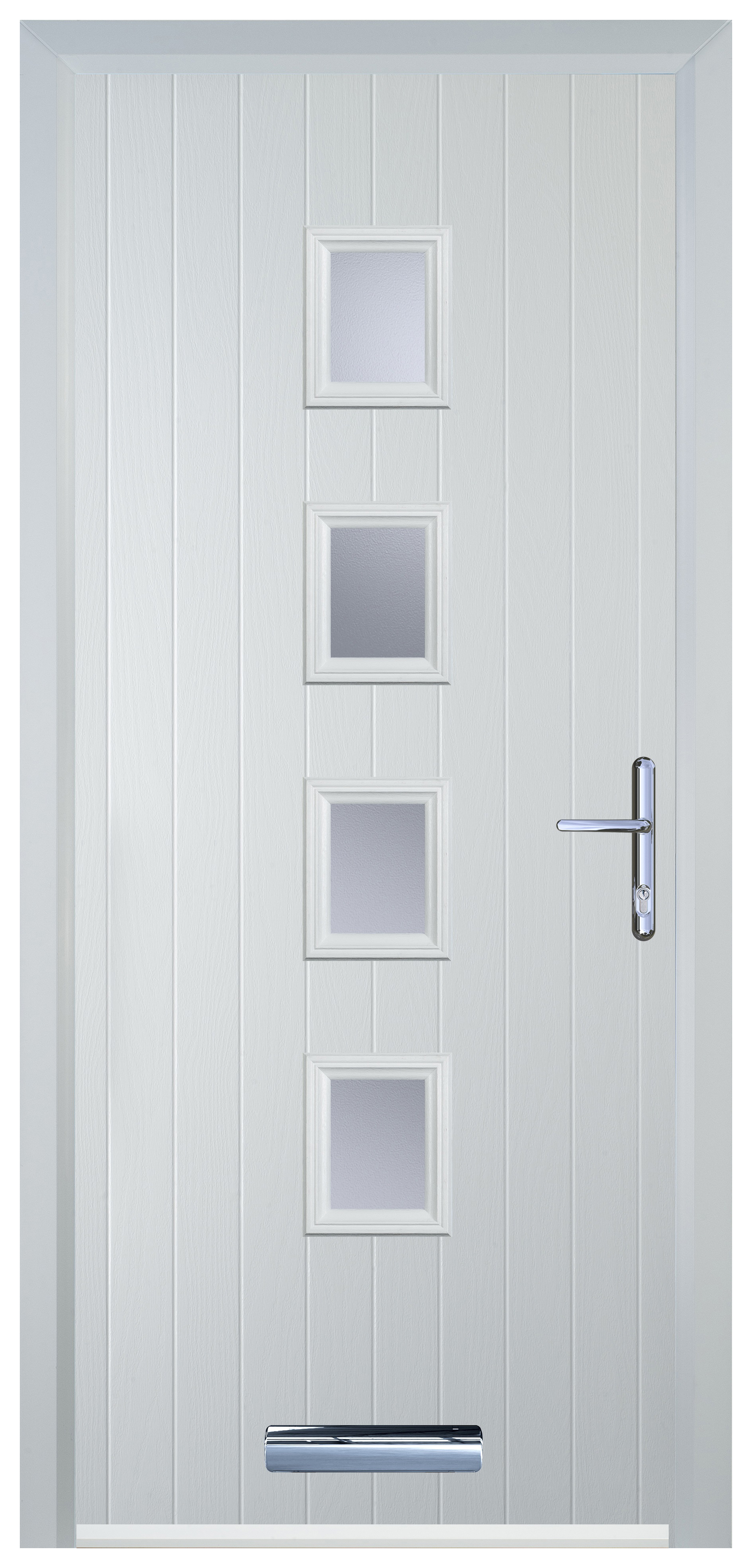 Door-Stop 4 Square White Left Hand GRP Composite Door with Stippolyte Glass - 920 x 2100mm - Door-Stop 4 Square White Left Hand Composite Door is designed to elevate both style and functionality within your home. This door combines minimal maintenance with durable construction for lasting performance. With its elegant design, this door adds a touch of sophistication to any entryway. Its white finish complements a variety of styles, seamlessly blending in with your home's decor. This door offers exceptional strength, stability, and security. Easy to install and its smooth surface is easy to clean, allowing you to enjoy its pristine appearance with minimal effort.