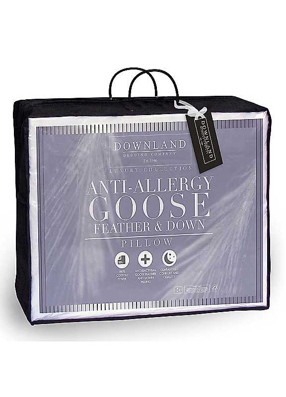 A pair of anti-allergy pillows in a luxury blend of goose feather and down creating years of long lasting support. With piped edging. Downland Pillow Features: Sponge clean only Cover: 100% Cotton downproof, 233 thread count Filling: 85% Goose Feather & 15% Down