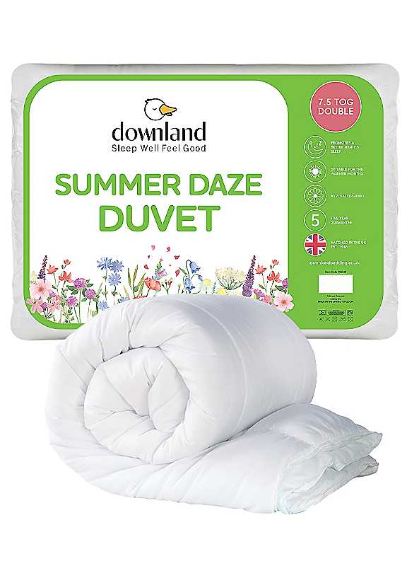 As the warmer months approach, ensure a restful night's sleep with Downland's Summer Daze 7.5 Tog Duvet - the perfect lightweight duvet for summer. Designed for those balmy nights, this breathable duvet features soft, moisture-wicking fibres that help regulate your body temperature, keeping you cool, fresh, and comfortable all night long.Crafted with high-quality, hypoallergenic materials, the Summer Daze duvet is ideal for allergy sufferers and those who prefer a gentle, skin-friendly touch. Its lightweight and airy design prevents overheating, allowing for uninterrupted, deep sleep even on the warmest nights.Say goodbye to restless, sweaty nights and hello to cool, refreshing sleep with Downland's innovative summer bedding collection. Perfect for warm sleepers, this easy-care, machine-washable duvet ensures hassle-free maintenance while delivering long-lasting comfort.Upgrade your summer bedding today with the Downland Summer Daze 7.5 Tog Duvet - because great sleep shouldn't stop when the temperature rises!MicrofibreEasy-careIdeal for allergy sufferers Features soft, moisture - wicking fibres that help regulate your body temperatureMachine washable