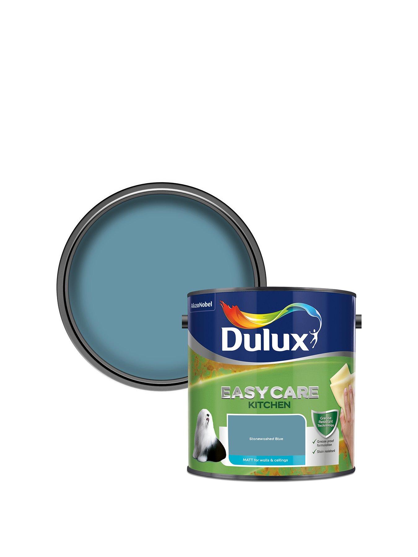 Dulux Easy Care Kitchen Matt Stonewash Blue 2.5L Paint Dulux Easycare Kitchen Paint Is An Exceptionally Tough Grease Resistant Paint That Keeps Your Room Looking Great For Longer. Depth: 16.5 Cm Grease Proof Stain Resistant Washable Water Based Matt Finish Height: 16.4 Cm Width: 16.6 Cm