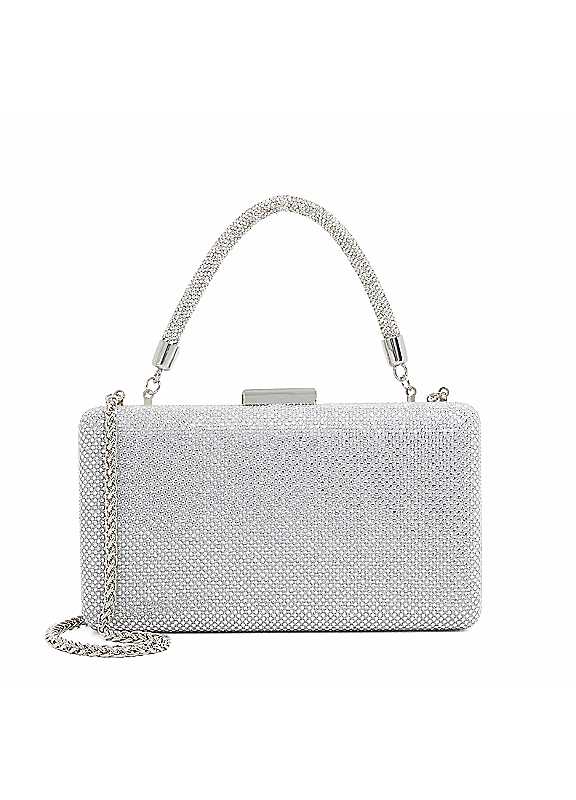 The Beauti clutch is a graceful fusion of craftsmanship and elegance. This structured bag is a signature Dune London style. A sparkling diamante-embellished top handle and ornate clasp add a touch of glamour, making it the perfect accessory for refined occasions. Carry it as a classic clutch or attach the elegant chain strap to wear over the shoulder, making it the perfect companion for everything from garden parties to evening soir©es.Dimensions approx. 11 x 20 x 4 cm