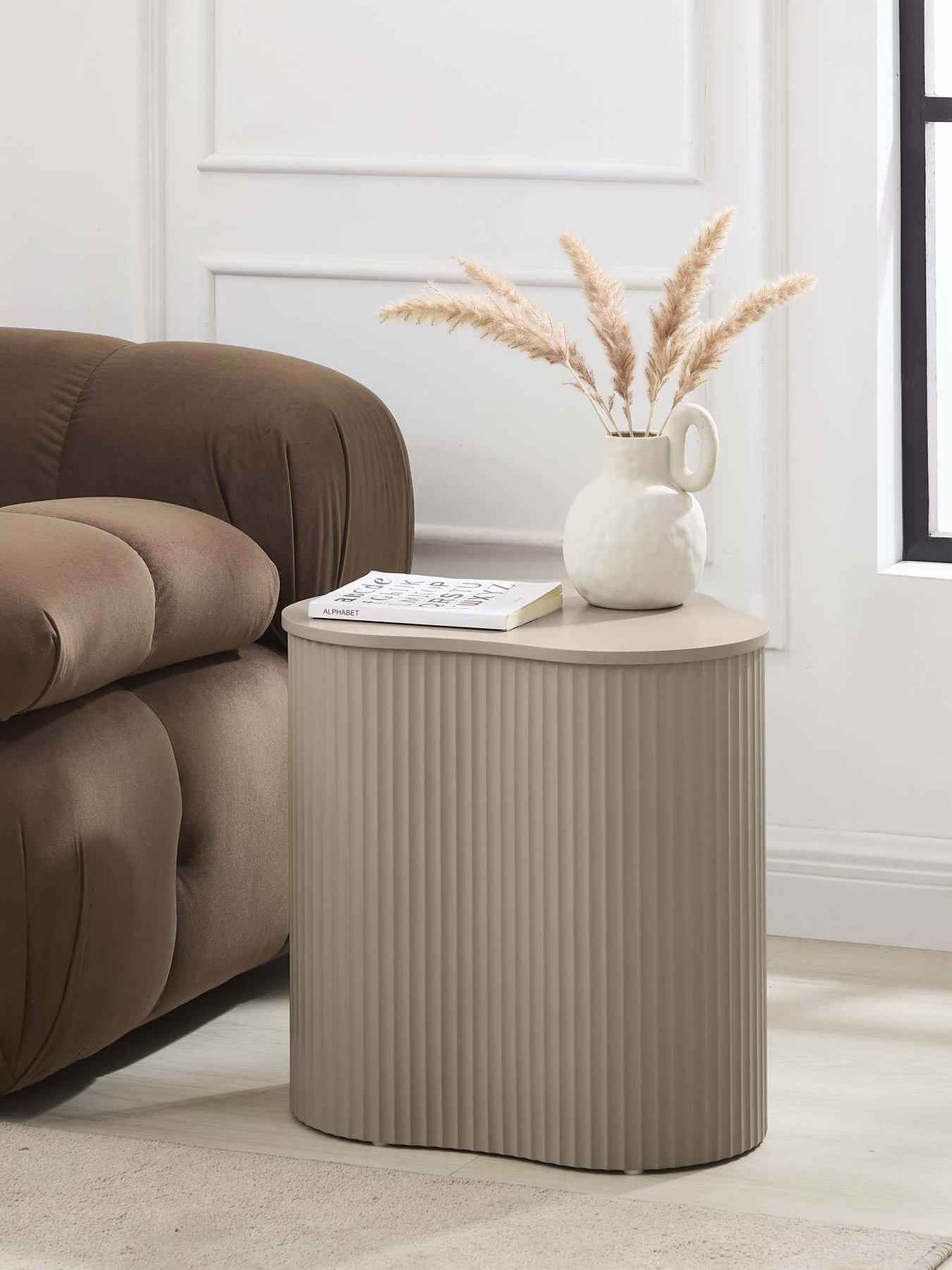 Dusk Evie Irregular Side Table - Taupe With Its Unique Curved Design And Sleek Lines, This Side Table Adds Character To A Room. Whether You Want Somewhere To Rest Your Morning Coffee Or Remote Controls, A Side Table Is A Useful Piece Of Furniture To Have In Your Living Space. A Perfect Match Keep In Mind: Our Styled Room Images Are For Inspiration Only, And Colours May Vary Depending On Lighting And Surroundings. For The Truest Colour Reference, Please See The Product Images On A Plain Background. Assembly: Self Assembly Frame Composition: Mdf Wipe Clean With A Soft Cloth Dimensions: Height 47.5 X Width 47 X Depth 37Cm