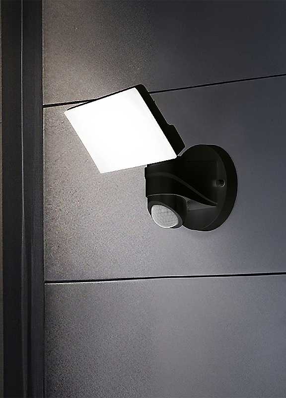 The Pagino exterior LED wall spotlight has a black plastic body with an adjustable rectangular head. The LEDs behind the white plastic light panels produce a bright neutral white light. The wall light is fitted with a motion sensor and comes on automatically, lighting up poor visibility areas and deterring unwanted visitors. The integrated twilight sensor gauges the ambient light level, so the light only switches on when needed. The product is suitable for outdoor use due to its IP44 protection against spray water. The spotlight can pivot right, left, up and down to provide targeted, secure and reliable outdoor illumination, whether providing lighting to the area around your property, the entrance to your house or your garage.IP44 ratingBlack plastic bodyOffers secure and reliable outdoor illuminationIntegrated motion sensorIntegrated LED componentsProduces a neutral white lightPerfect for the entrance to your house or garage5 Year WarrantyDimensions approx. 26 x 16 x 18 cm