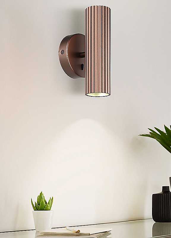 The EGLO Portillo Uplight & Downlight showcases a sleek, modern design with a ribbed effect that adds texture and visual interest. Its versatile lighting choices make it ideal for enhancing any room's ambience. The fixture offers both upward and downward lighting to suit your mood and decor. It is available in Black, Matte Brass, and Bronze finishes. Please note that this product requires 2x GU10 LED bulbs for operation.Bronze FinishLightweight DesignIP20 RatedRequires 2 x GU10-LED 5WRibbed DesignWall LightIndoor UseProtection Class 1Dimensions approx. 20 x 8.5 x 10.5 cm | up down wall lights, wall mounted lights, aluminium led light, steel lighting, bronze wall light, modern wall lights