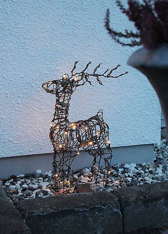 Introducing the Vixen LED Deer Decoration: Illuminate your outdoor space with enchanting warmth! Crafted from a sturdy brown metal frame, this deer-shaped decoration comes alive with integrated LED string lights. The pleasant, warm white glow adds a touch of magic to your garden or patio. Standing tall at 55 cm, its modern design seamlessly blends into any outdoor setting. And here's the best part: with an IP44 protection rating, it's built to withstand the elements. Let the Vixen LED Deer create a festive atmosphere in your outdoor oasis!Brand: EGLODeer-inspired designWarm white GlowModern eleganceAutomatic timerBulb with max wattage: LED 66WSuitable for Outdoor & Indoor useSpecifications material: 80% Steel, 20% PlasticDimensions approx. 55H x 12W x 36D cmPlease note: The images of the products on our website are for illustrative purposes. We endeavour to display as accurately as possible the colours of our products on our website, however, as different computers and mobile devices display colour tones differently we cannot guarantee the complete accuracy of the pictures or photographs that are shown | outdoor christmas decorations, christmas deer decor
