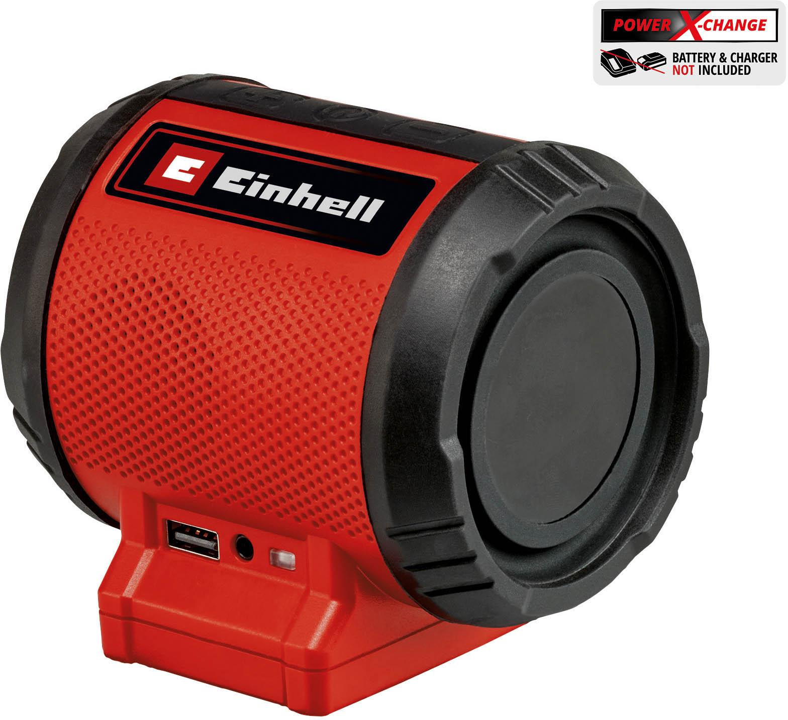 With the Einhell cordless speaker TC-SR 18 Li BT - Solo, you can easily connect to all Bluetooth-enabled devices such as smartphones or tablets. In addition, the speaker has an AUX port for connecting MP3 players or smartphones, and a USB port for charging smartphones, tablets or MP3 players. The intuitive control panel allows easy handling. As a member of the Power X-Change family, all high-quality lithium-ion batteries in the system range can be combined with the cordless speaker. Delivery does not include battery or charger. These are available separately, e.g. as a practical starter kit.