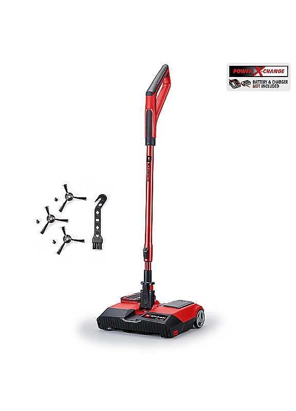 The Einhell TE-FS 18 Li-Solo cordless sweeper is the ideal helper for intermediate cleaning tasks. As a member of the Power X-Change family, the sweeper can be combined with all batteries and charging devices across the system. Due to the removable battery system, the cleaner offers unlimited, cordless runtime: if the battery is empty, then simply insert the next one and carry on cleaning. With its flexible swivel joint, bottlenecks can be cleaned effortlessly, such as between furniture or under workbenches. Even sweeping around different objects is no problem. Rubberised wheels help with manoeuvring. Its compact and lightweight design, together with the adjustable telescopic handle with soft grip, enables fatigue-free and ergonomic sweeping for every user. The 250 mm wide and removable cleaning brush is equipped with high-quality bristles which can clean all hard floors from dry dirt such as dust, chips or crumbs with an integrated cleaning lip. A side brush additionally ensures that sweeping can be carried out on hard floors close to the edge. Dust and dirt end up in the 400 ml collection container, which can be completely removed for cleaning. The integrated led light also enables cleaning of dark areas. For easy storage, the cordless sweeper is equipped with a self-standing function. The TE-FS 18 Li-Solo cordless sweeper is supplied with three side brushes and a cleaning tool for the brush roller. The battery and charging device are not included in the scope of delivery. These are available separately. Part of the Power X-Change family, 1 x 18 V battery required Flexible swivel joint enables cleaning of bottlenecks Compact, lightweight design for fatigue-free sweeping Interchangeable, easy-to-clean cleaning roller Cleaning lip for sweeping hard floors Self-standing function for easy storage Telescopic handle for ergonomic sweeping Easy cleaning of the removable collection container LED light for cleaning in dark areas Rubberised wheels for easy manoeuvring Including 3x side brush for cleaning near the edge on hard floors Including 1x cleaning tool for removing hair from the brush Delivered without battery or charging device