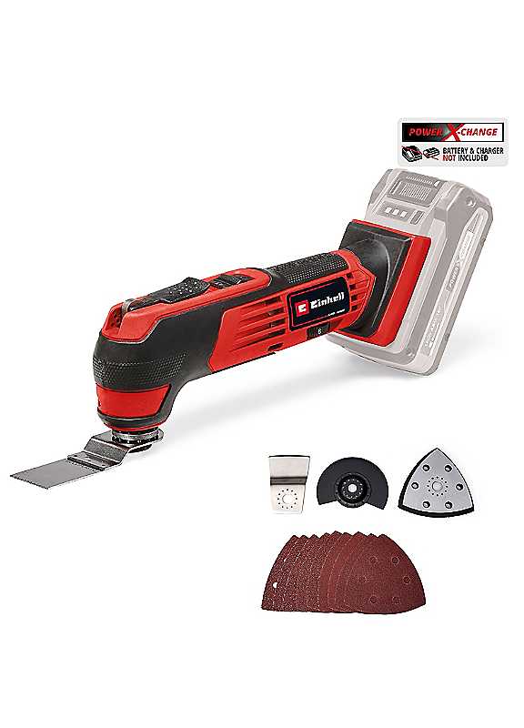 The Einhell cordless multifunctional tool TE-MG 18/1 Li-Solo is a particularly versatile and high-quality device especially suited for construction and renovation work. With its extensive equipment, coping with tasks such as sawing, grinding or scraping becomes an effortless task. As part of the Power X-Change family, the multitool can be used with any battery or charger from the system.The tool-free accessory change is made possible by the quick-release lock. The magnetic 12-pin tool adapter allows flexible positioning of accessories. The speed electronics ensure precise and material-friendly working. The multitool works with an oscillation angle of 3.2°, which enables precise use. The battery holder is also equipped with a vibration-decoupled battery holder for vibration reduction. The soft grip surfaces with structure ensure safe and pleasant working, even for longer periods of use.The equipment includes a delta sanding shoe with hook-and-loop fastening and a set of 9x sanding paper in different grain sizes (each 3x p60, p80, p120). Also included in the delivery are a scraper, a plunge saw blade for wood and plastic, and a segment saw blade for wood, plastic and soft metal (HSS). The Einhell cordless multifunctional tool TE-MG 18/1 Li-Solo is suitable for versatile applications. With its extensive equipment, coping with tasks such as sawing, grinding or scraping becomes an effortless task.The magnetic 12-pin tool adapter allows flexible positioning of accessories. The speed electronics ensure precise and material-friendly working. A delta sanding pad is included, as well as sanding papers in different grits (3x p60, p80, p120 each). In addition, a scraper, a plunge saw blade for wood and plastic, and a segment saw blade for wood, plastic and soft metal (HSS) are included. Supplied without battery.Member of the Power X-Change family, 1x 18 V battery requiredQuick-release fastener for tool-free accessory exchange, Speed electronics for material- & application-oriented workVibration-decoupled battery mount for vibration reductionMagnetic 12-pin tool holder, Incl. delta sanding shoe with hook & loop fasteningIncl. 9x sandpaper for wood & metal (3x each P60, P80, P120), Incl. ScraperIncl. plunge-cut saw blade for wood & plastic, Incl. segment saw blade for wood, plastic & soft metal (HSS)Safe & comfortable working because of the soft gripSupplied without battery & chargerWeight approx. 0.83kg