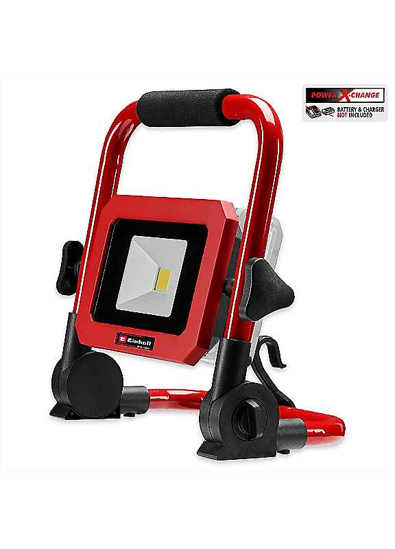 The Einhell TC-CL 18/1800 Li cordless lamp lights up the dark: powered by an 18 v Power X-Change rechargeable battery, it has a high-performance led to provide optimum illumination. For infinitely variable adjustment of the brightness there is a rotary dimmer, and the 360° degree swivelling lamp head provides a high level of flexibility. The practical carry-handle makes it easy to transport, and for storage in minimum space the foot can be folded in. For universal use a robust fastening hook is provided.This product comes without a battery or charger. These are available separately, for example as a practical starter set.A member of the Power X-Change familyOptimum illumination thanks to a high-performance LEDRotary dimmer for infinitely variable brightness adjustmentHigh flexibility thanks to 360° swivelling lamp headFolding foot for storage in minimum spaceRobust fastening hook for universal useSupplied without battery & chargerWeight approx. 1.15kg | dimmable led lights, cordless work light, flexible led lighting, adjustable led lighting, bright led lights, foldable work light, battery powered led, rechargeable led work light, battery operated lights, portable led light