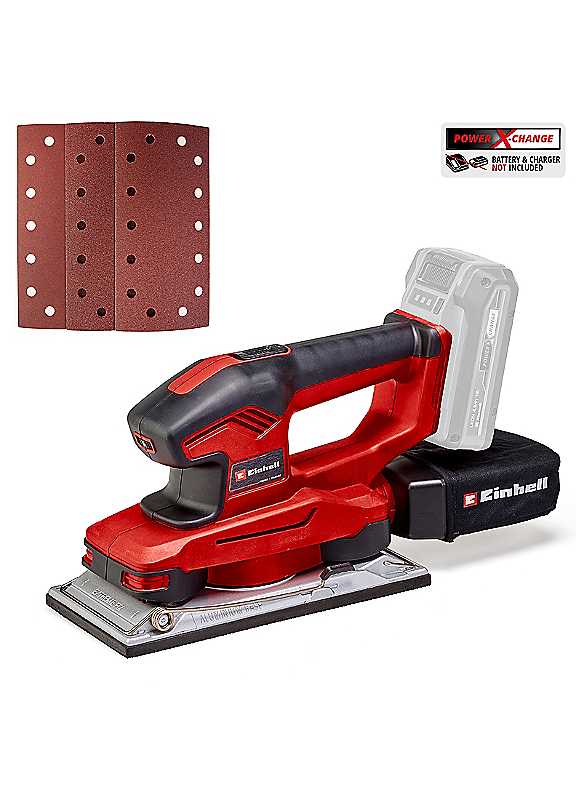 The Einhell cordless orbital sander TE-OS 18/230 Li Solo is a powerful member of the flexible and infinitely combinable Power X-Change family from Einhell. The robust, powerful orbital sander is perfectly suited for sanding flat surfaces such as workpieces, wooden planks or panelling and cladding. The speed is adapted to the material and application by the speed electronics. Thanks to the micro hook and loop fastening and clamping device, the abrasives on the robust and durable aluminium base plate can be changed quickly and easily.The grip surfaces, which are equipped with soft grip, offer a firm and secure grip. The dust collection sack collects any sanding dust produced. There is also the option to connect a vacuum cleaner for maximum cleanliness on the work surface. The Einhell cordless orbital sander TE-OS 18/230 Li Solo is a powerful member of the flexible Power X-Change family from Einhell. The robust, powerful orbital sander with aluminium base plate is perfect for sanding flat surfaces. The speed is adapted to the material by the speed electronics.The sandpaper can be changed easily and quickly by means of micro hook and loop, and even sandpapers without Velcro adhesion can be used. The grip surfaces, which are equipped with soft grip, offer a firm grip. The dust collection sack collects any sanding dust produced, and a vacuum cleaner can also be connected.Delivery includes 3x sandpapers, so you can start your project straight away, but battery and charger are not included.Member of the Power X-Change family, Robust, powerful orbital sanderPerfect for sanding flat surfaces, Speed adjustment adapted to the material thanks to speed electronicsQuick & easy sandpaper change thanks to micro hook & loop, Also suitable for sandpapers without hook & loop fasteningRobust, durable aluminium footplate, Ergonomic grip surfaces with soft gripDust collection sack collects any sanding dust producedMaximum cleanliness possible by connecting a vacuum cleanerIncl. 3x sandpapers, so that you can start your project right awaySupplied without a battery or chargerWeight approx. 1.5kg