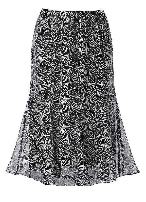Comfortable, bold-look skirt in light chiffon fabric with a comfortable elasticated waistband for easy slip-on. In a slim cut at the top, and then flows beautifully with sewn-in godet seams at the hem. Belt not included Washable 100% Polyester Petite length approx. 68 cm (27 ins) Regular length approx. 72 cm (28¾ ins)