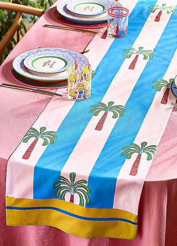 Bring the sunshine city of LA's palms to your dinner table with this beautiful runner from British designer Eleanor Bowmer. Known for her colourful, fun, and quirky designs, Eleanor's 'Electric coast' tableware range will add a pop of colour and a breath of fresh air to the kitchen and dining areas of the home.Featuring hand-illustrated, embroidered palm trees, this gorgeous table runner is made from high-quality Cotton and is guaranteed to add a little sunshine to your table, all year round.Washable at 30°C, Gentle cycle100% Cotton