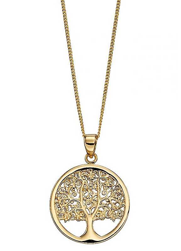 Stay on trend with this 9ct gold necklace which features a beautiful tree of life design. Crafted with a modern polished finish and provided with a yellow gold chain, this necklace is ideal for any occasion. Brand: Elements Gold Material: 9ct gold Clasp: Bolt ring Height Inc bale: 24.5 mm Width: 18 mm Depth: 1 mm Bale size: 3.9mm Chain length approx. 41- 46 cm (16 - 18 in) | round gold necklace, gold pendant necklace, gold necklace charm, gold chain necklace