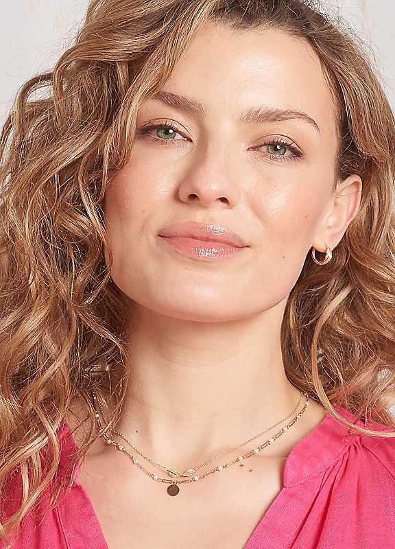 Elements Gold Pearl Station Necklace with Disc - Yellow
