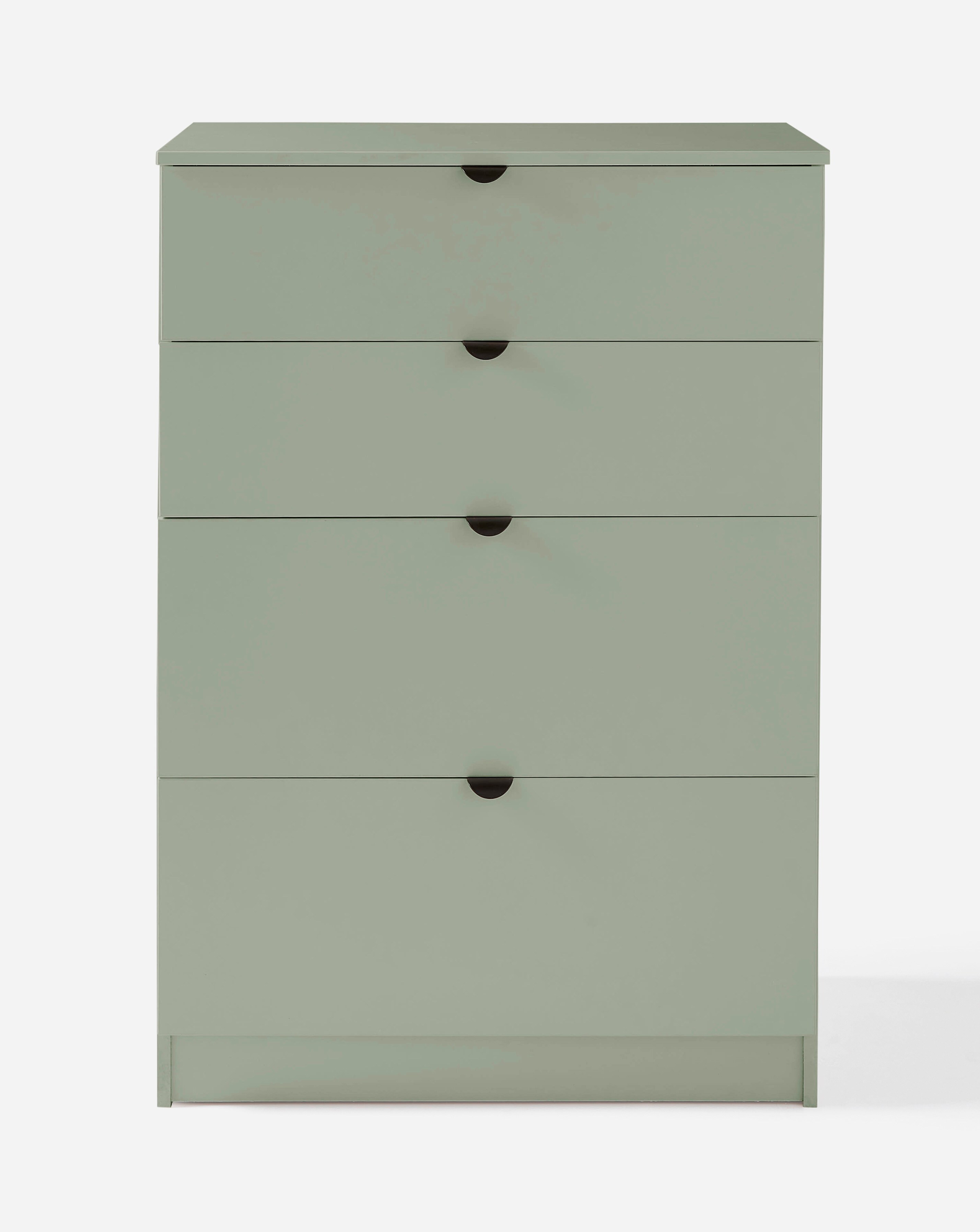 The Ellison 4 Drawer Chest has a scratch resistant finish and semi-circular metal handles. Made in the UK. Ready assembled