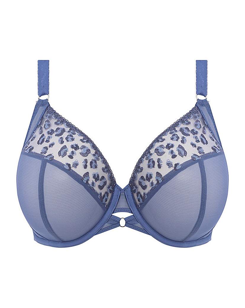 Based on Matilda frame, Namrah plunge bra offers a bandless styling with no fabric under the cup, preventing roll-up. Top cup embroidery features a leopard spot design. Elasticated neck edge for ease of fit. Soft foldover elastic overlay on the bottom edge of underband and centre gore for all-day comfort. Rose gold metal apex rings and bow with metal ring detail at centre front.