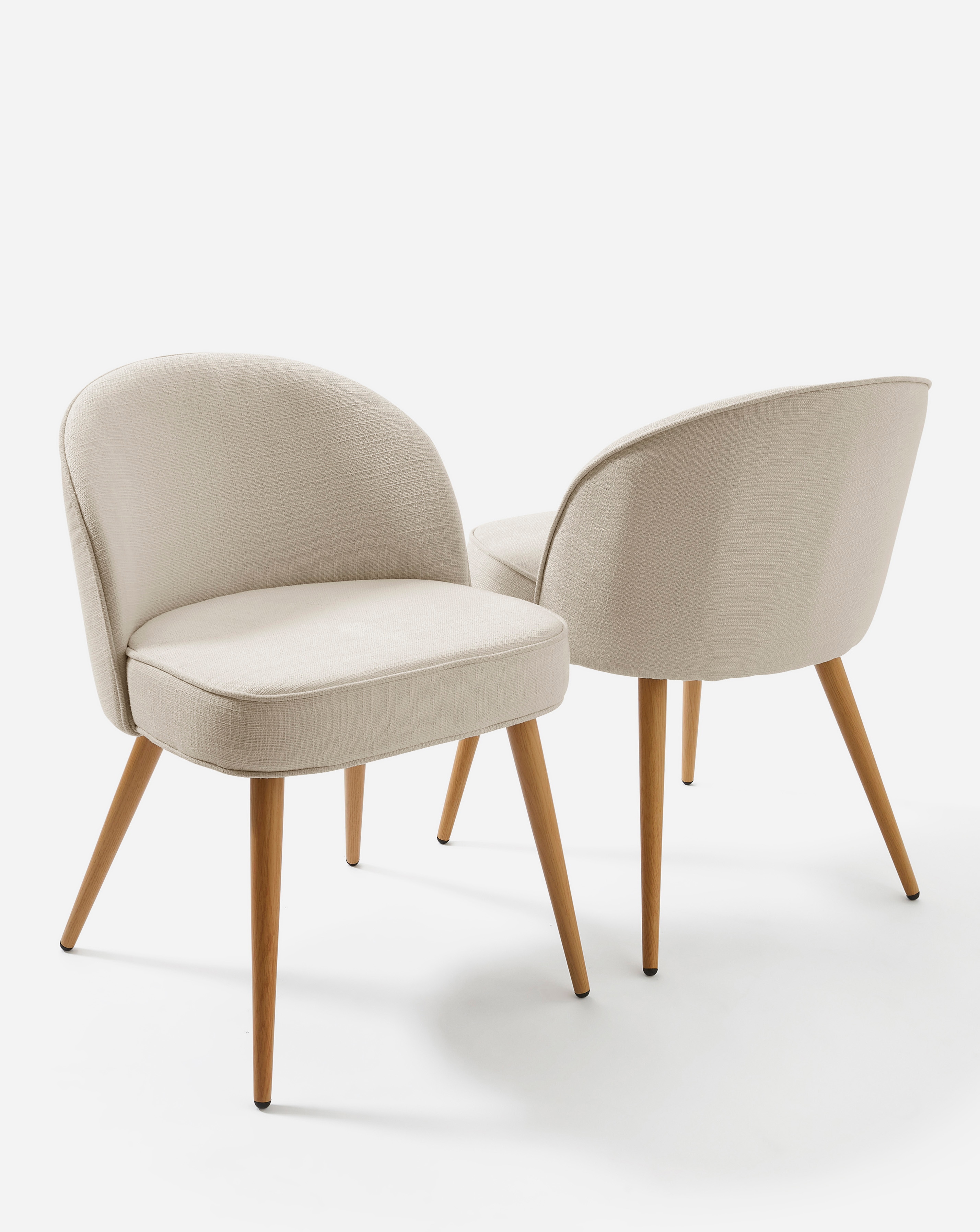 The Emilie pair of dining chairs have tapered metal legs finished with a wooden effect. Self assembly required.