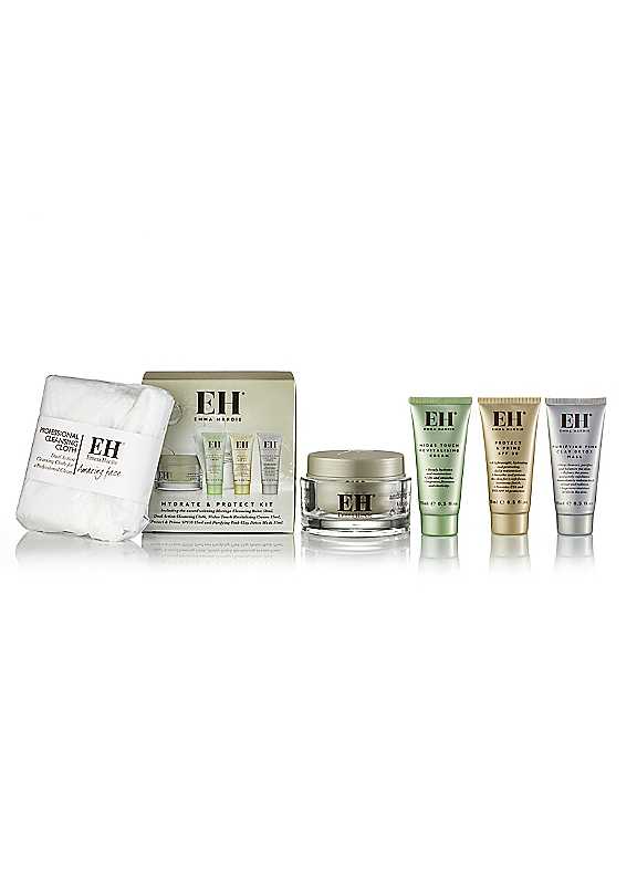 Your complete routine for radiant, healthy-looking skin - cleanse, hydrate, protect and glow. This curated set of bestsellers is ideal for travel, gifting, or discovering the Emma Hardie range. Set Contains:- Moringa Cleansing Balm 50g- Protect & Prime SPF30 15ml- Purifying Pink Clay Detox Mask 15ml- Midas Touch Revitalising Cream 15ml Moringa Cleansing Balm 50g- The original, award-winning balm-to-oil cleanser- Effortlessly removes makeup, SPF and daily impurities- Skin is left soft, nourished and perfectly balanced Protect & Prime SPF30 15ml- Daily moisturiser, skin-smoothing primer and SPF30 in one- Instantly brightens and blurs with a demi-matte finish- Wears beautifully alone or under makeup Purifying Pink Clay Detox Mask 15ml- Deeply cleanses, exfoliates and brightens in just 10 minutes- Helps reduce congestion, refine pores and calm redness- Skin feels fresh, smooth and clarified Midas Touch Revitalising Cream 15ml- Hydrating, firming day-to-night moisturiser- Softens fine lines and restores bounce and glow- Leaves skin feeling cushioned, plumped and radiant How to Use: Moringa Cleansing Balm 50ml:- Take an almond-sized amount and massage thoroughly, onto dry skin, over the face, neck and decollete. The balm melts into a nourishing oil which dissolves makeup, excess oil, dead skin cells, debris and pollutants.- Moisten your fingertips with warm water and continue to massage. The oil emulsifies into a fluid hydrating milk.- Rinse off with plenty of warm water or use our Dual Action Cleansing Cloth for a pro therapist deep cleanse with added exfoliation. This method is particularly beneficial whenever your skin feels dull, tired, congested, or sluggish.- Soak your cloth in warm water and squeeze out any excess. Use the fluffy microfibre side first for expert makeup removal, then repeat with the cotton muslin side for skin polishing.- When working with your cloth, we recommend using our linear 'lines not circles' technique. To achieve this, simply support the skin with your opposite hand whilst drawing the damp cloth gently in 'straight lines' up, across, and along, finishing down the sides of the face and neck. This helps to stimulate the lymphatic system, encouraging the drainage of toxins; a natural way of rejuvenating and lifting the facial contour. Protect & Prime SPF30 15ml:- Apply liberally each morning to clean dry skin - either alone or on top of your preferred treatment serum or moisturiser.- In full sun exposure, re-apply every 2 hours. Purifying Pink Clay Detox Mask 15ml:- Once a week, after cleansing, smooth a thin layer of mask over the face, neck and decollete, avoiding the delicate eye area.- Leave for 10-15 minutes.- Rinse off with lots of warm water or remove with your Dual Action Cleansing Cloth and warm water. Midas Touch Revitalising Cream 15ml:- Use morning and evening, after cleansing.- Massage an almond-sized amount over the face, neck, decollete. Follow with SPF protection (daytime).- Great makeup base for super dehydrated skin. Certifications:- Cruelty free- Vegetarian-friendly