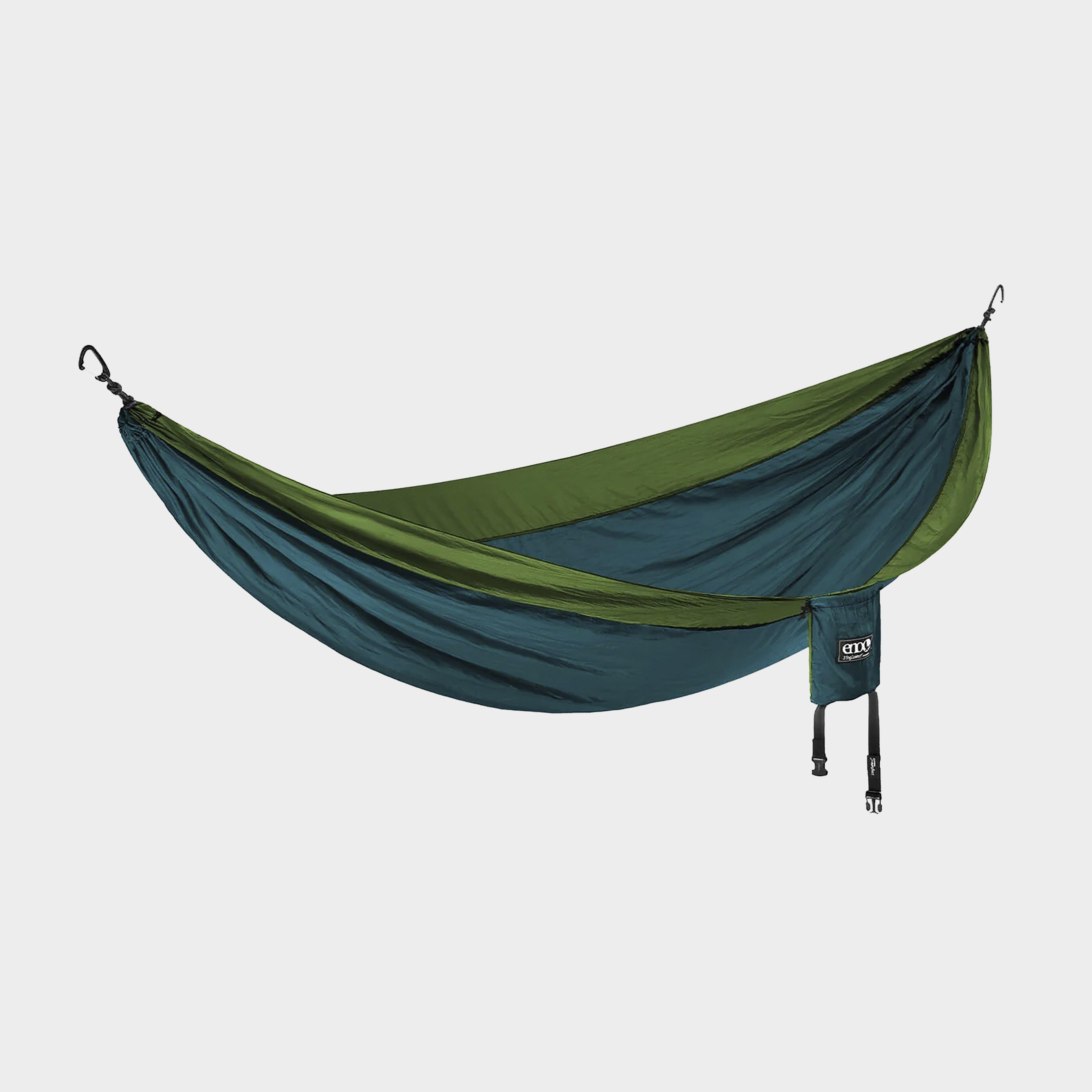 ENO SingleNest Hammock__Experience relaxation anywhere with the ENO SingleNest Hammock - a lightweight yet strong hammock built for one. Spacious, breathable, and crafted from FreeWave 70D Nylon, it combines comfort with durability, making it perfect for solo adventures, festivals, or lazy afternoons outdoors. Designed with triple-stitched seams and high-quality carabiners, it supports up to 400 lbs (≈181 kg), ensuring strength and reliability whether you are camping, hiking, or lounging at home.__The SingleNest packs easily into its integrated stuff sack, which also doubles as a stash pocket for essentials. Compact and portable, it slips neatly into your backpack so you can take it anywhere without bulk. The hammock sets up quickly, is tough enough for repeated use, and includes anodized 7075 aluminum hardware built to last. From backcountry trips to backyard comfort, it delivers a versatile balance of convenience and relaxation for outdoor enthusiasts.__Extra Product Details__Size: One Size - approx. 290 × 147 cm (9′6″ × 4′10″)_Packed Size: ~13.5 × 10 × 12.5 cm (≈ 5¼″ × 4″ × 5″)_Weight: ~454 g (≈ 16 oz)_Capacity: 400 lbs (≈181 kg)_Material: 100% FreeWave 70D Nylon Taffeta with anodized 7075 aluminum hardware_Use: Solo hammock for camping, festivals, travel, or backyard lounging; lightweight, packable comfort_