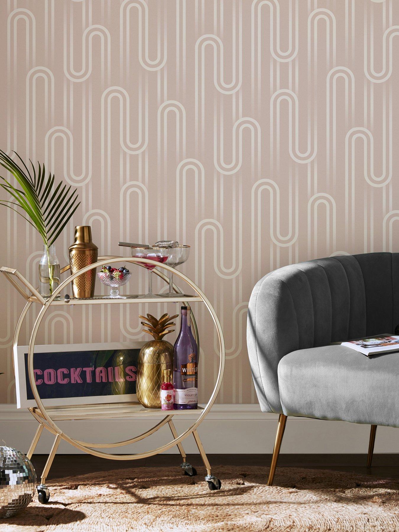 Envy Ups And Downs Wallpaper In Peach Embrace The Retro Vibes Of Envy'S Ups And Downs Wallpaper And Bring A Perfectly Peachy Pop Of Summer To Your Interiors. Its Fab Curving Patterns Build Intrigue And Depth, While The Peachy Sorbet Palette Gives It A Dreamy, Laidback Feel That'S Perfect For Super-Comfy Room Settings. Try Using It To Brighten Up Your Lounge Or Bedroom And Tying Together With Your Choice Of Furniture. Simple, Timeless Pieces Will Blend Beautifully, Or You Can Go All Out By Contrasting With Bolder, Statement-Making Furniture. Paste The Wall Technology Means You Won'T Need To Worry About Fighting With Pasting Tables Or Carrying Sticky Paper Around The Room. Just Apply Your Adhesive Directly On Your Wall Of Choice, Line Up Your Paper And It'S Good To Go! Depth: 7 Cm Height: 10 M Material Content: Paper Wallpaper Design: Geometric Width: 520 Cm Paste The Wall Wipe Clean With A Soft Cloth On Trend Designs