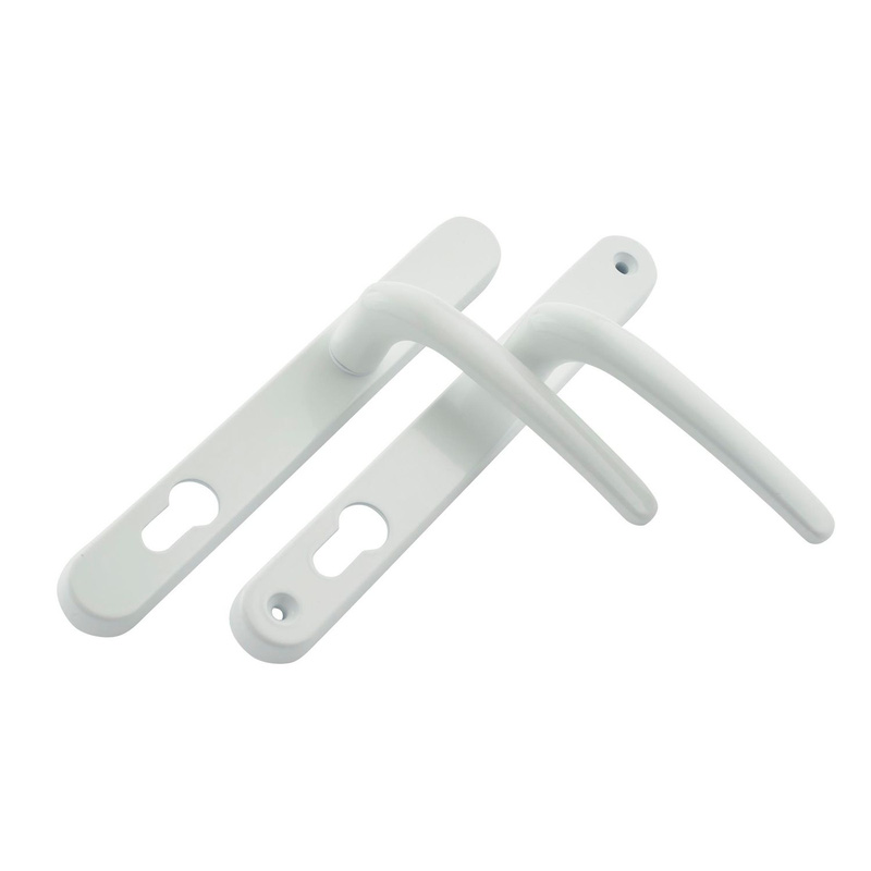 * Versatile – suitable for uPVC, composite and timber doors * Matt black finish – handle with matching back plate * 241 x 30mm plate – for new doors or replacements * Fits a 92mm PZ Euro cylinder – not included * Screw and spindle pack – to suit 44mm or 70mm profiles A decorative inline lever door handle designed to operate a multipoint lock with Euro cylinder. Suitable for uPVC, composite or timber doors, it comes with a screw and spindle pack to suit either 44mm or 70mm profiles. The stylish solid handle and softly rounded back plate come in an attractive classic white finish. Perfect for new door installations or as a quick and easy handle replacement, screw fixings are located above the lever and at the bottom of the backplate to fit locks with a screw hole dimensions of 211mm. * Versatile – suitable for uPVC, composite and timber doors * Classic white finish – handle with matching back plate * 241 x 30mm plate – for new doors or replacements * Fits a 92mm PZ Euro cylinder – not included * Screw and spindle pack – to suit 44mm or 70mm profiles * Colour-coordinated screw heads – for a neat finish * Easy installation – no need to fit springs or lever * 10-year mechanical guarantee – T&Cs apply | ERA Decorative Inline Lever Door Handle (Pair) in White