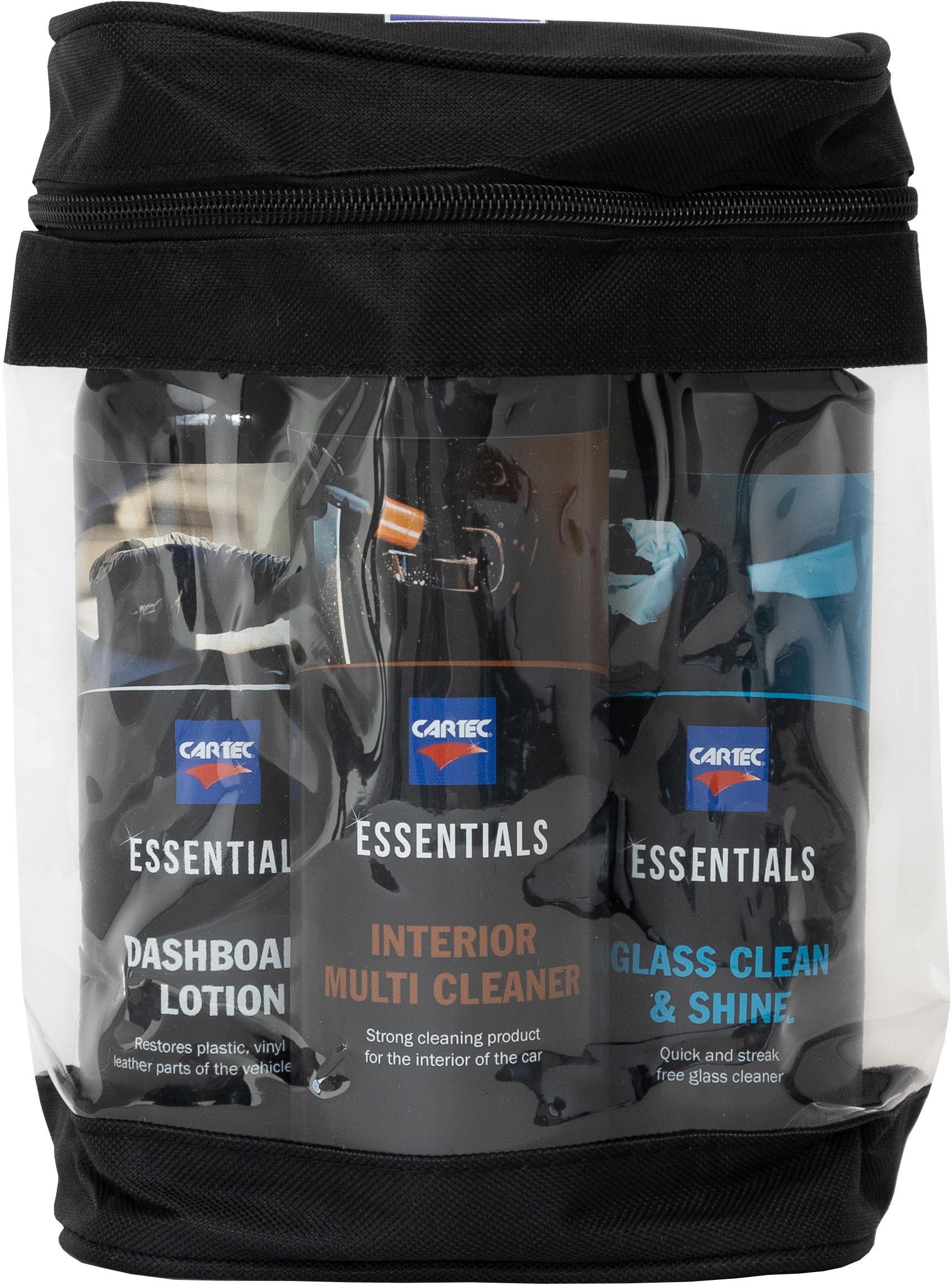 Make your vehicle looks it's best with the Cartec Essentials Interior Cleaning Kit! Containing three essential products: Interior Multi Cleaner 500ml, Dashboard Lotion 500ml, Glass Clean & Shine 500ml, Dashboard Lotion Applicator,Glass Cleaning Cloth, Soft Interior Brush, Kit Bag