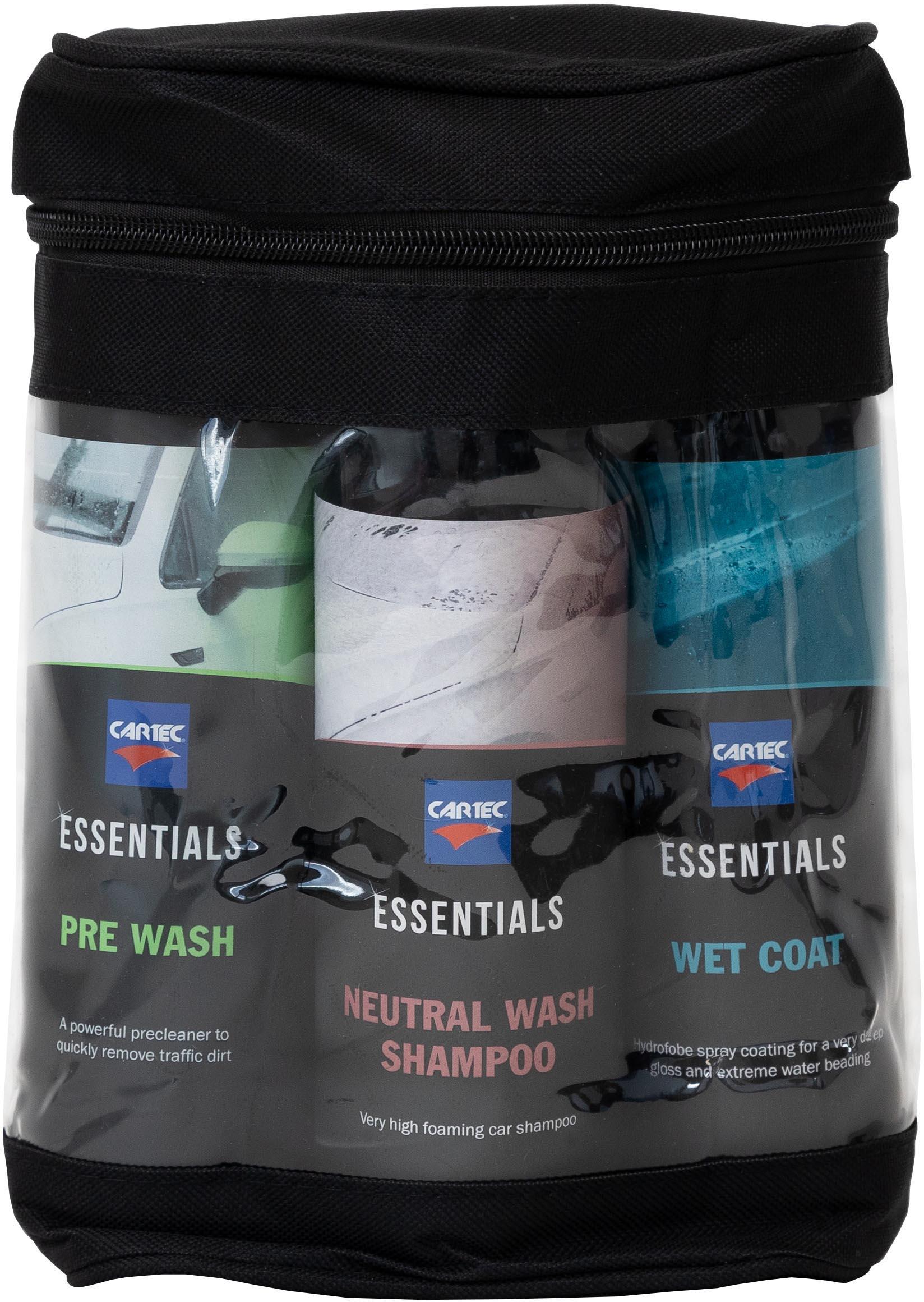 Make your vehicle looks it's best with the Cartec Essentials Wash & Protect Collection Containing three essential products + accessories: Pre Wash 500ml, Neutral Wash Shampoo 500ml, Wet Coat 500ml, Wash Mitt, PVA Micromax Drying Cloth, Kit Bag