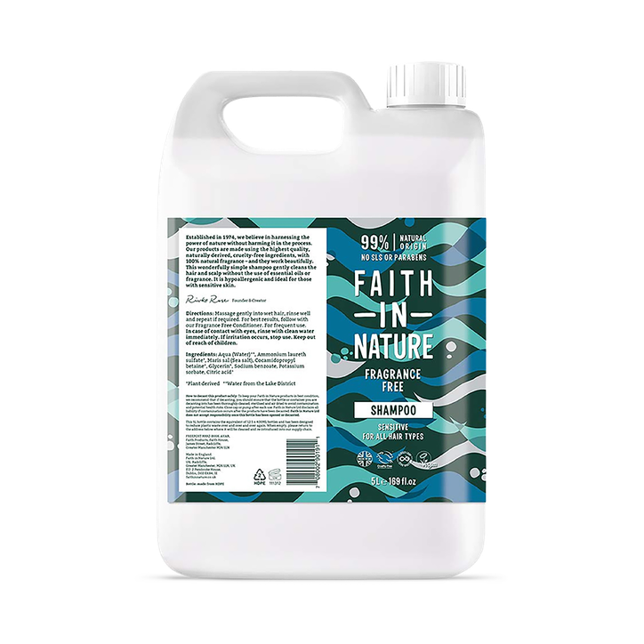 Faith In Nature Shampoo for Sensitive Scalps Fragrance Free 5L