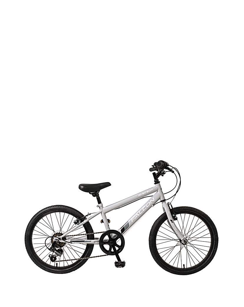 The Falcon Jetstream rigid 20 bike has been designed with junior riders in mind with a carefully considered frame geometry that helps ensure a comfortable and safe riding position. The hi-tensile steel frame is strong and durable while the lightweight rigid fork provides a stable ride for children not used to suspension, whilst reducing vibrations from the pavement thanks to the curved lower section. As well as being great looking, the Jetstream has a great spec to match. 6-speed gearing is powered by a Shimano rear derailleur and Revoshift shifter, ensuring smooth gear changes without losing grip of the handlebars. The double-sided chainwheel guard protects fingers and clothes and prevents the chain from slipping off the chainring. MTB style pedals provide reassuring grip and the soft compound handlebar grips are durable and comfortable to hold. Braking is taken care of by reliable front and rear V-brakes with specially designed reach-adjustable brake levers that can be adjusted to accommodate smaller hands. The Jetstream is ideally suited to grow with young riders thanks to the longer 250mm seat post, adjustable saddle fore and aft position and quill handlebar stem that can be adjusted up and down to suit. The wheels are assembled with strong yet lightweight alloy rims and all-surface tyres for riding across a variety of terrain. The Falcon Jetstream really is a cut above the rest and the perfect bike for young riders looking to progress and learn how to use gears. Inside leg measurement of 51-64 cm/20-25.