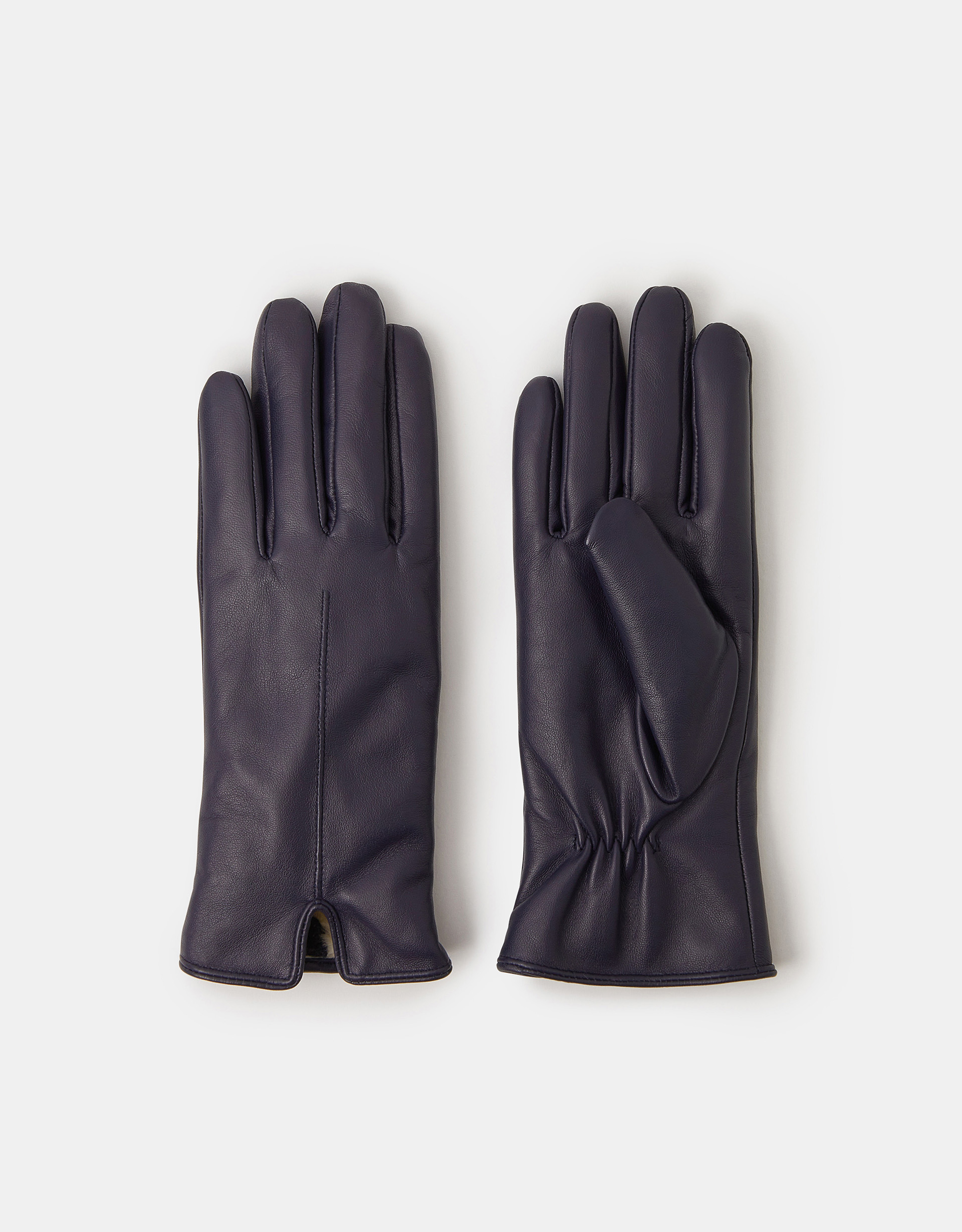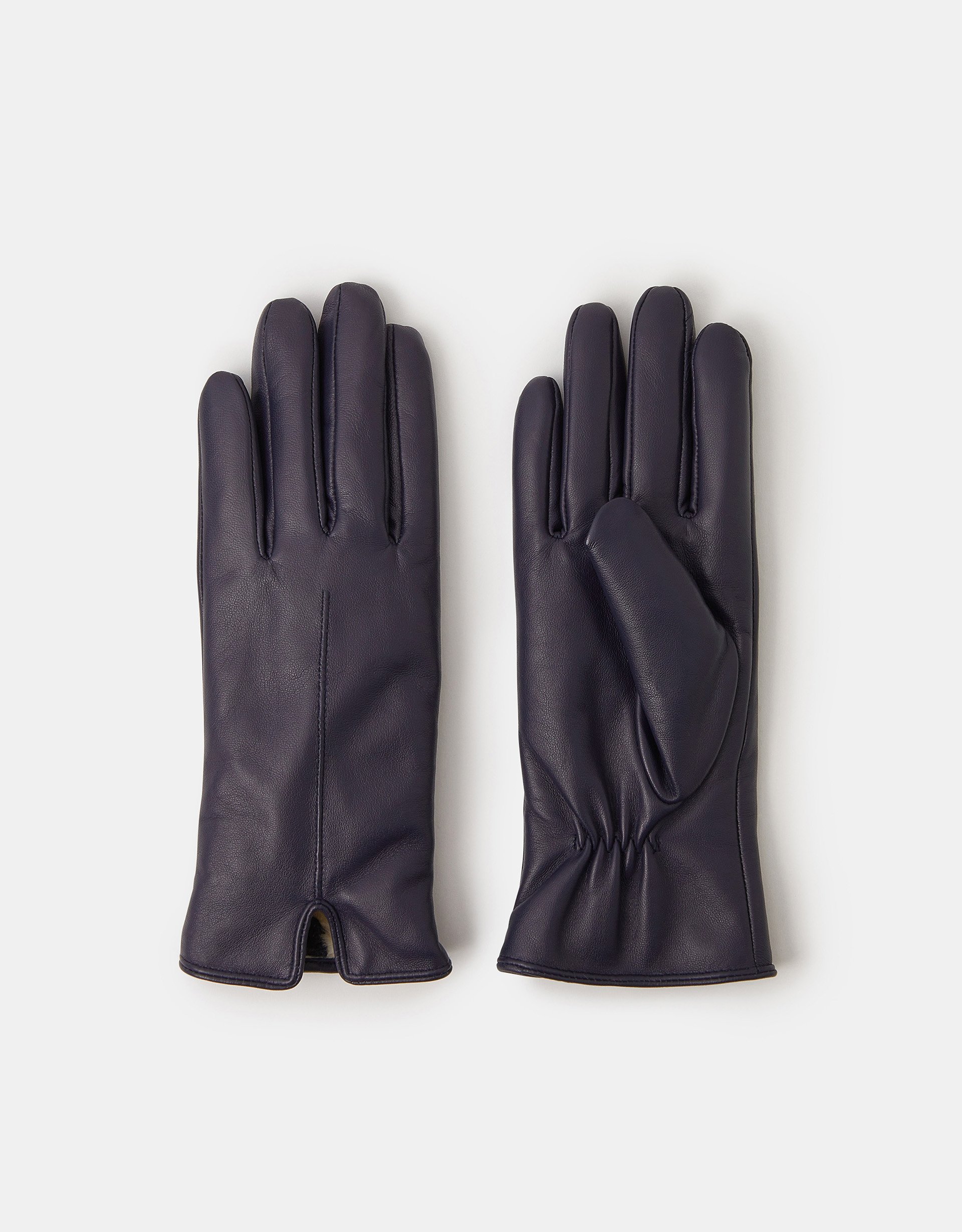 These smooth leather gloves are the ultimate winter accessory. They're lined with cosy faux fur and feature a stretchy stitched panel on the base for a comfortable fit. Blue