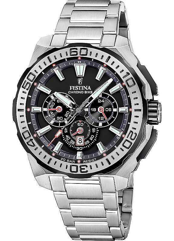 Festina Chrono Bike Men's Watch with Stainless Steel Bracelet - Silver/Black - Size ONE SIZE