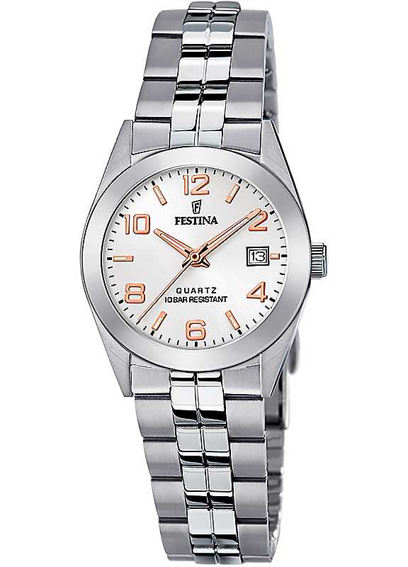 Elegant and classic Stainless Steel watch with date indication. The watch is 10 bar water resistant and comes with a nice steel bracelet.Brand: FestinaStainless Steel round caseWater resistance to 100 meters2 Years manufacturer warrantyStainless Steel bracelet with push button deployment claspProtective hardened mineral glassMetal