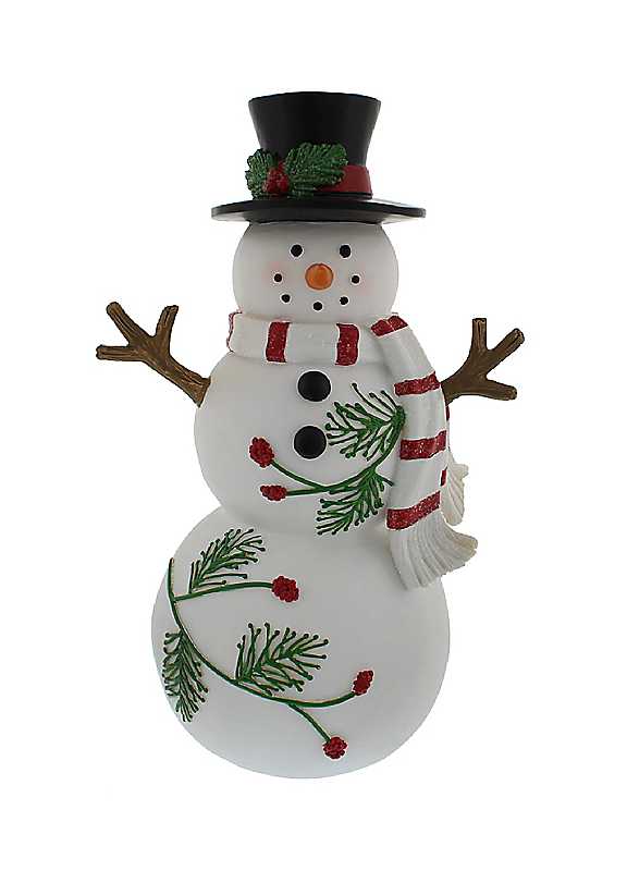 Bring some winter magic into your home with this 25cm polyresin snowman! Decked out in a red and white striped scarf and a classic black top hat, this charming snowman is surrounded by foliage and red berries, making him the perfect addition to your festive decor. Polyresin Dimensions: 25 x 12 x 15 cm | white christmas ornaments, snowman ornament, winter wonderland christmas ornaments, black and white christmas decor, black christmas decorations