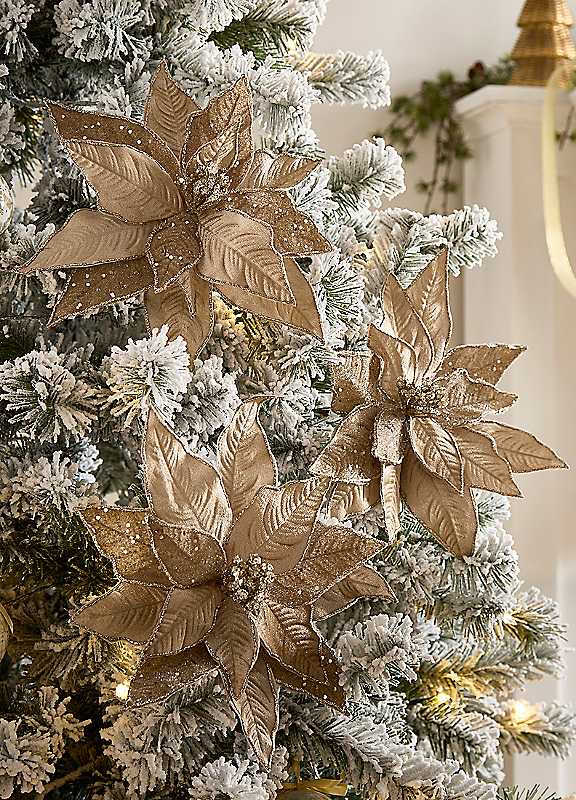 Festive Set of 3 Champagne Gold Poinsettia Stems