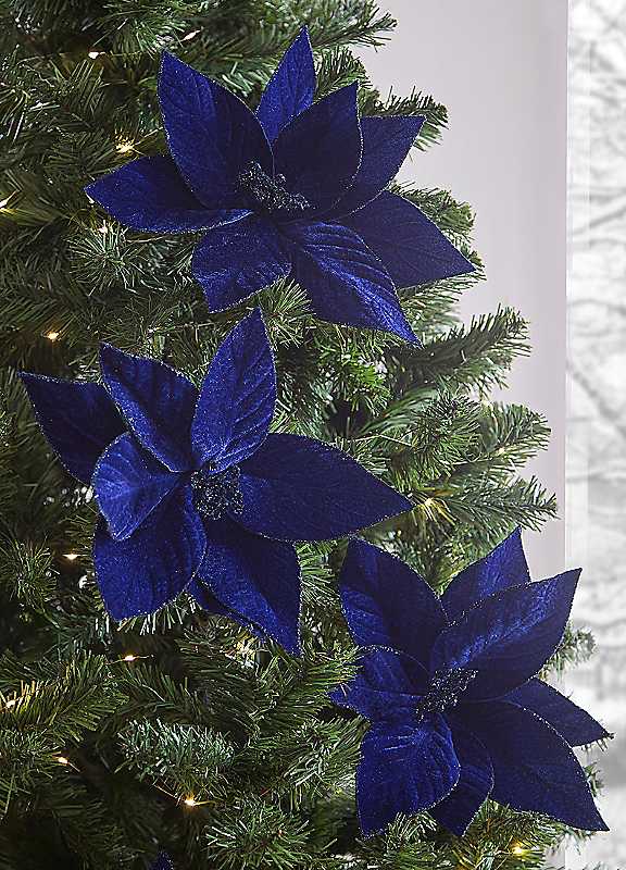 Festive Set of 3 Navy Blue Poinsettia Stems