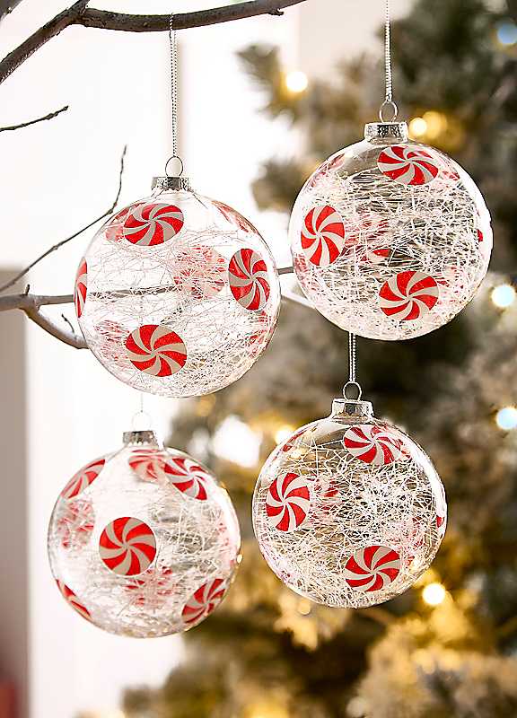Add a playful and festive sparkle to your festive decor with this set of four 10cm clear crackle effect glass balls, each decorated with charming red and white candy cane sweets. he unique crackle glass texture creates a shimmering effect that beautifully catches the light, while the candy cane accents inside add a whimsical, nostalgic touch. Perfect for decorating Christmas trees, garlands, or seasonal displays, these ornaments bring a cheerful pop of colour and texture to your festive setup.Set of 4Glass baublesDimensions: 10 x 10 x 10 cm | glass christmas ornaments, christmas balls decorations, glass candy christmas ornaments, large christmas baubles, candy cane christmas decorations, christmas tree baubles, colorful christmas ornaments, clear glass christmas balls
