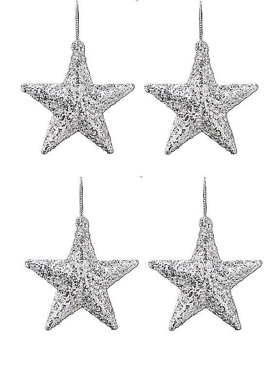 Add a celestial sparkle to your festive decor with this set of 4 silver glitter glass star decorations. Measuring 8cm each, these shimmering stars catch the light beautifully, bringing a touch of magic and shine to your Christmas tree or seasonal displays.Set of 4Silver starsDimensions: 8 x 4 x 8 cm | christmas ornaments, glass christmas ornaments, christmas tree ornaments, christmas star decorations, glitter christmas ornaments, hanging christmas decorations, silver christmas ornaments