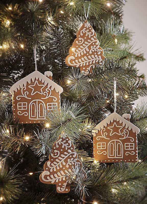 Festive Set of 4 Polyresin Gingerbread Baubles