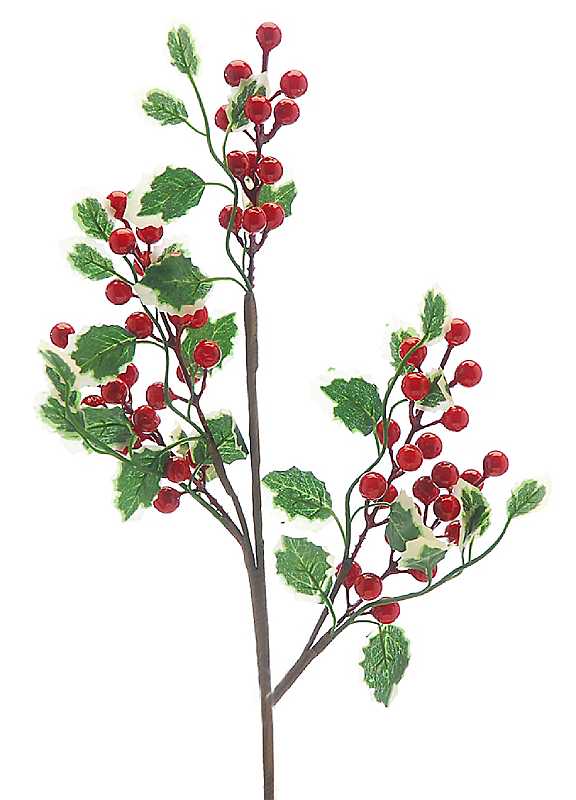 Festive Set of 4 Red Berry and Holly Leaf Stems