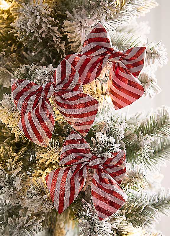 Add a touch of luxury and festive sparkle to your decor with this set of 9 red and white bows. Perfect for embellishing gifts, trees, wreaths, or even festive table settings.Candy cane swirl design Dimensions: 15 x 11 cm
