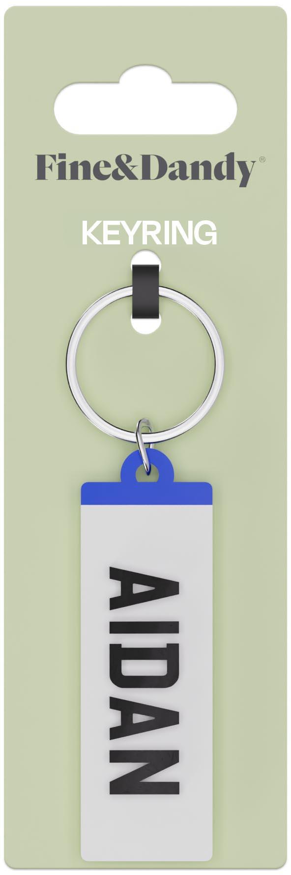 A personalised PVC keyring from Fine & Dandy, styled like a UK number plate and printed name— a fun and practical everyday accessory.