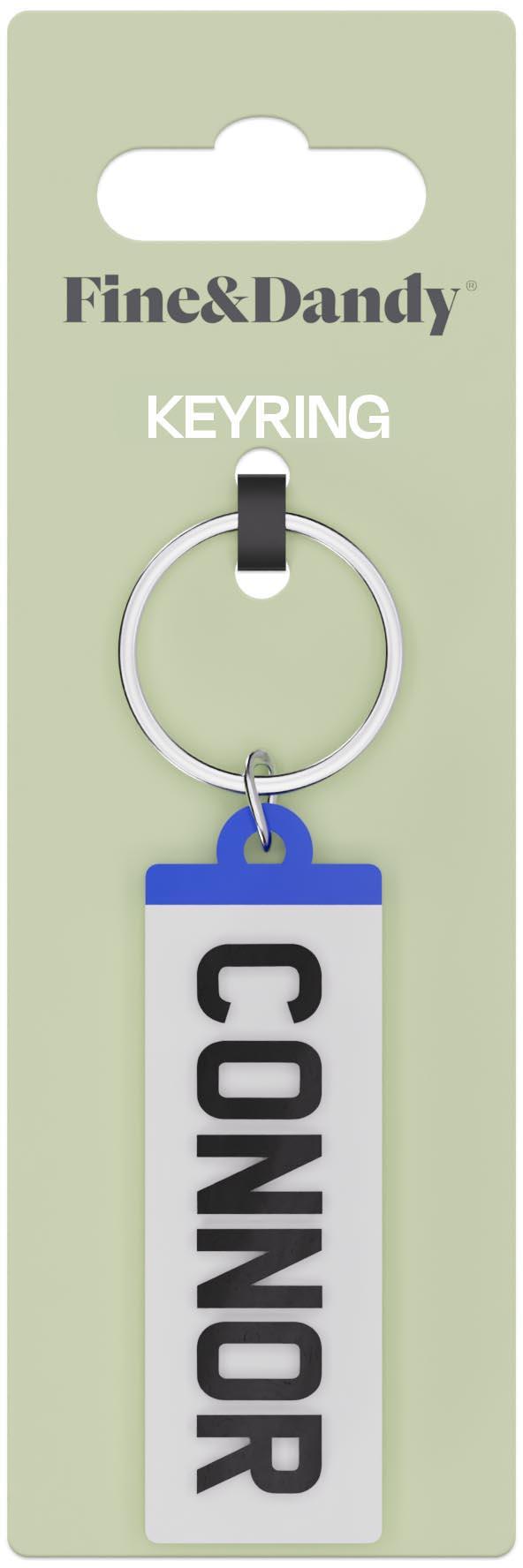 A personalised PVC keyring from Fine & Dandy, styled like a UK number plate and printed name— a fun and practical everyday accessory.