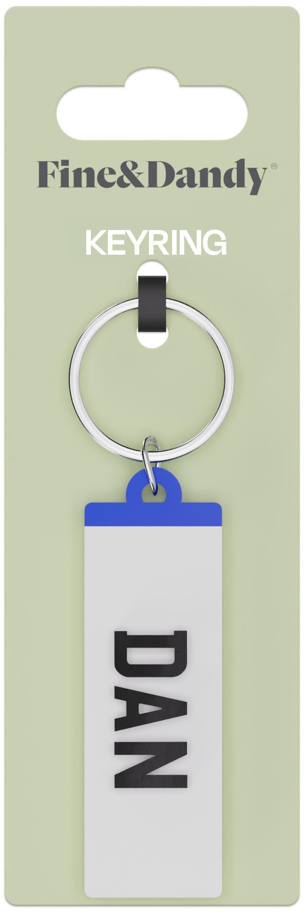 A personalised PVC keyring from Fine & Dandy, styled like a UK number plate and printed name— a fun and practical everyday accessory.