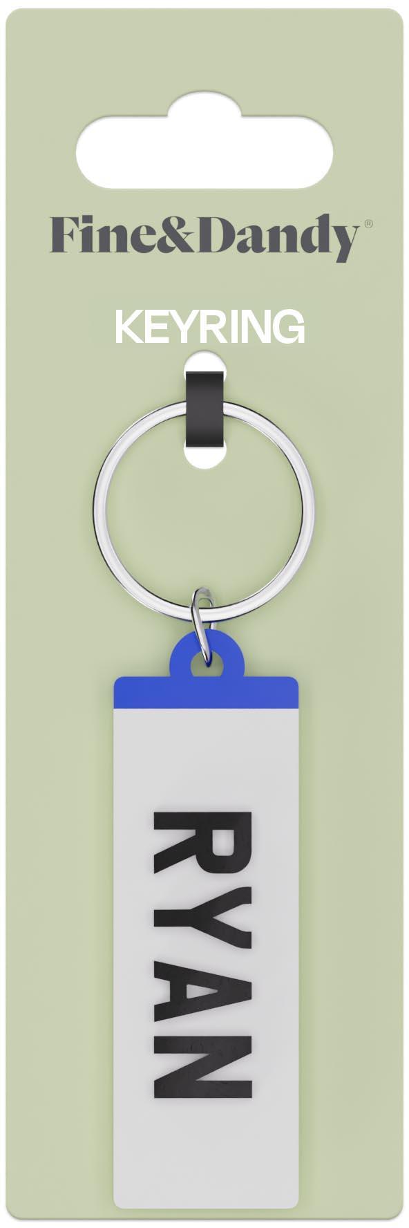 A personalised PVC keyring from Fine & Dandy, styled like a UK number plate and printed name— a fun and practical everyday accessory.