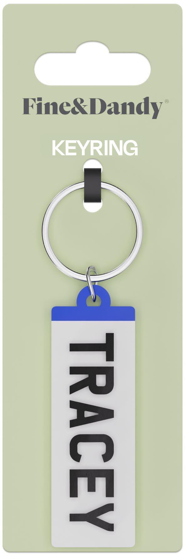 A personalised PVC keyring from Fine & Dandy, styled like a UK number plate and printed name— a fun and practical everyday accessory.