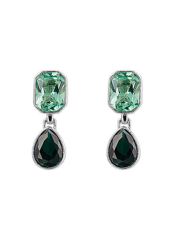 Fiorelli Octagon & Teardrop Shaped Drop Earrings with Emerald Crystal - Silver