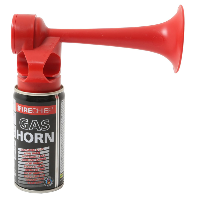 Need a loud and reliable way to raise the alarm? This emergency gas horn from Firechief is ideal for providing temporary alarm cover on construction sites, at outdoor events, or during alarm installations. The redesigned horn produces a loud, 112dB blast with an acoustic range of approximately 1500m. The horn uses an environmentally friendly, non-flammable gas that complies with EU regulations. The new design is also more efficient, meaning you get more uses out of each 100ml can. * Raises the alarm – loud 112dB output with a 1500m range * Temporary alarm cover – ideal for construction sites * Environmentally friendly – uses a non-flammable, compliant gas * Efficient design – gives you more uses from each can | Fire Chief Firechief Emergency Gas Horn 100ml in Black
