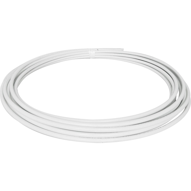 A flexible polybutylene barrier pipe for use as part of a push-fit system, this is a reliable choice for domestic water supplies and central heating applications in your home. It’s suitable for both hot and cold plumbing, and can be used in pressurised, combi, sealed or open vent central heating systems. An EVOH barrier layer prevents the ingress of oxygen through the pipe wall, protecting your system. Remember to use inserts to support the pipe in fittings. * Versatile use - suitable for hot and cold plumbing, or central heating. * System protection - EVOH barrier layer prevents oxygen from entering. * BSI Kitemark-approved - certified to BS 7291 Parts 1 and 2 for quality. * WRAS-approved - suitable for use with potable water. * Guaranteed quality - comes with a 25-year manufacturer’s guarantee. * Choice of sizes - available in a range of diameters and lengths. * Colour options - choose between grey or white pipe. | Flume PB Barrier Pipe 15mm x 25m in White